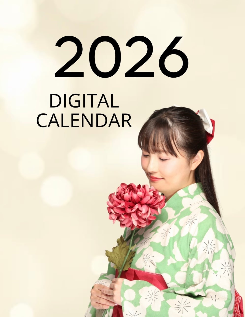2026年デジタルカレンダー12ヶ月 (携帯待ち受けサイズ)